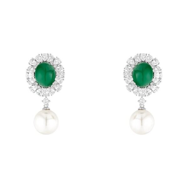 Brinco Oval Com Pérola e Esmeralda – Elaine Palma