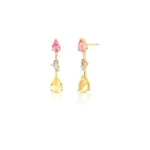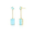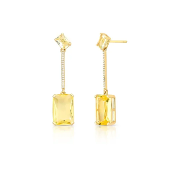 BRINCO PÊNDULO COM CRISTAIS RETANGULARES AMARELO E ZIRCÔNIAS
