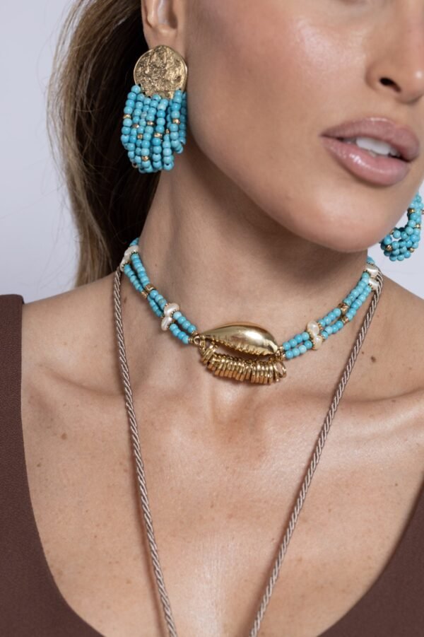 Brinco Moeda C/ Bolinhas Turquesa – Gio Bernardes