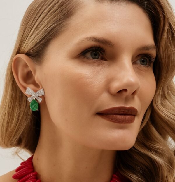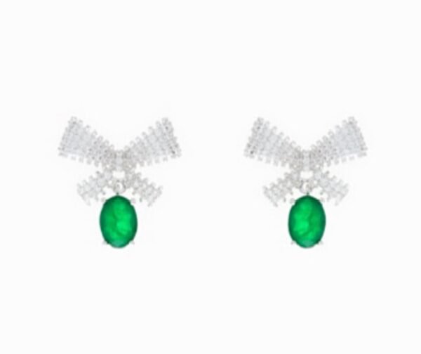 Brinco Laço Prateado cristal Esmeralda