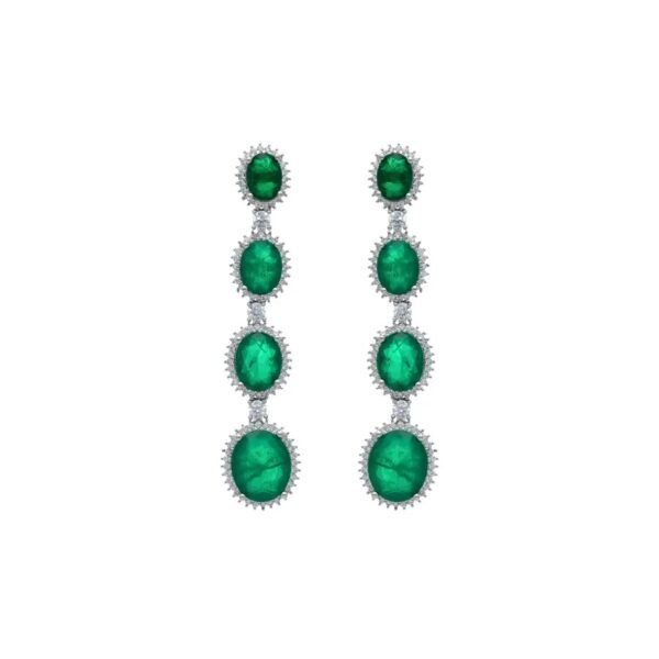 Brinco Princesa Oval Esmeralda Fusion Rodio Branco