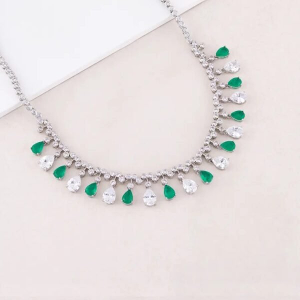 Colar Riviera Varias Gotas Esmeralda Fusion Rodio Branco