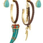 O Colar Longo Penca Trend combina couro ecológico trançado com mix de pingentes multifuncionais, incluindo dente central de resina com cravação, podendo ser usado também como charm.